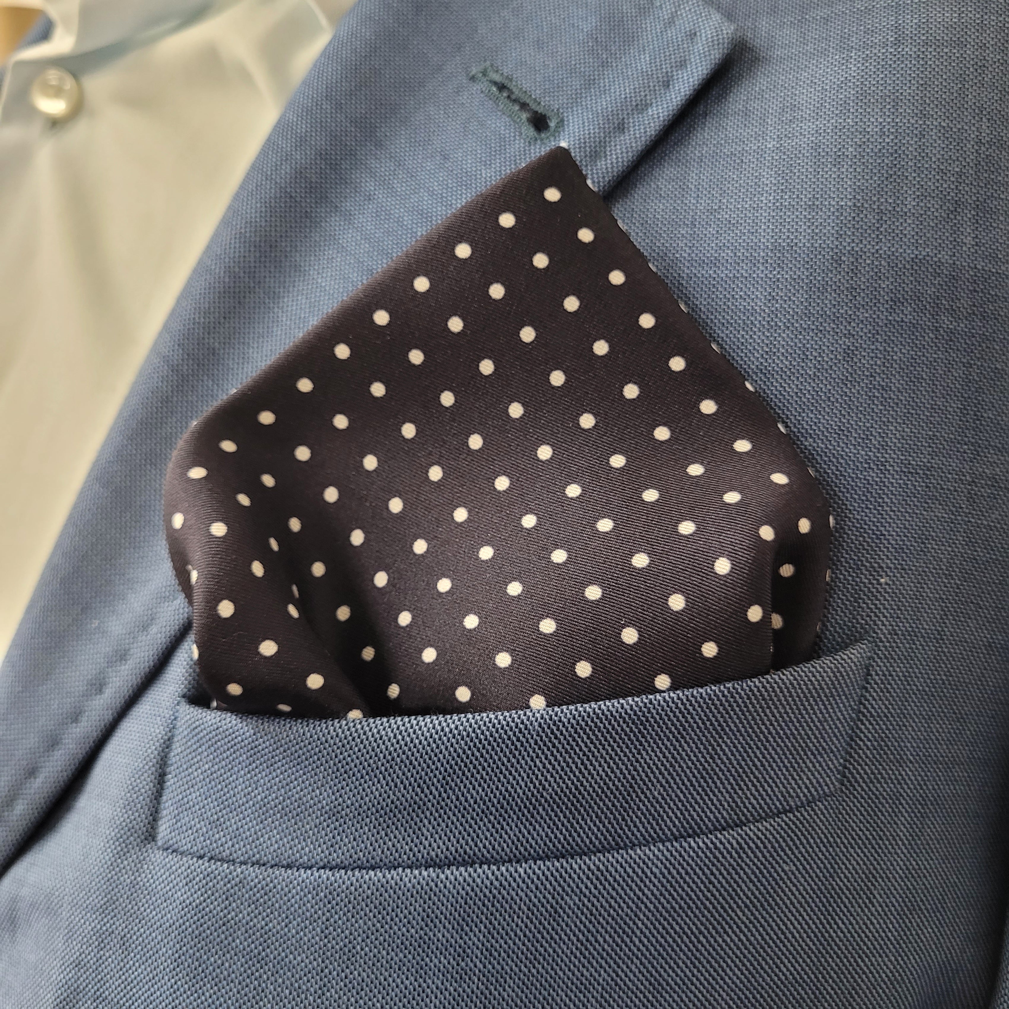 Dark Navy and White Classic Spot Print Silk Pocket Square