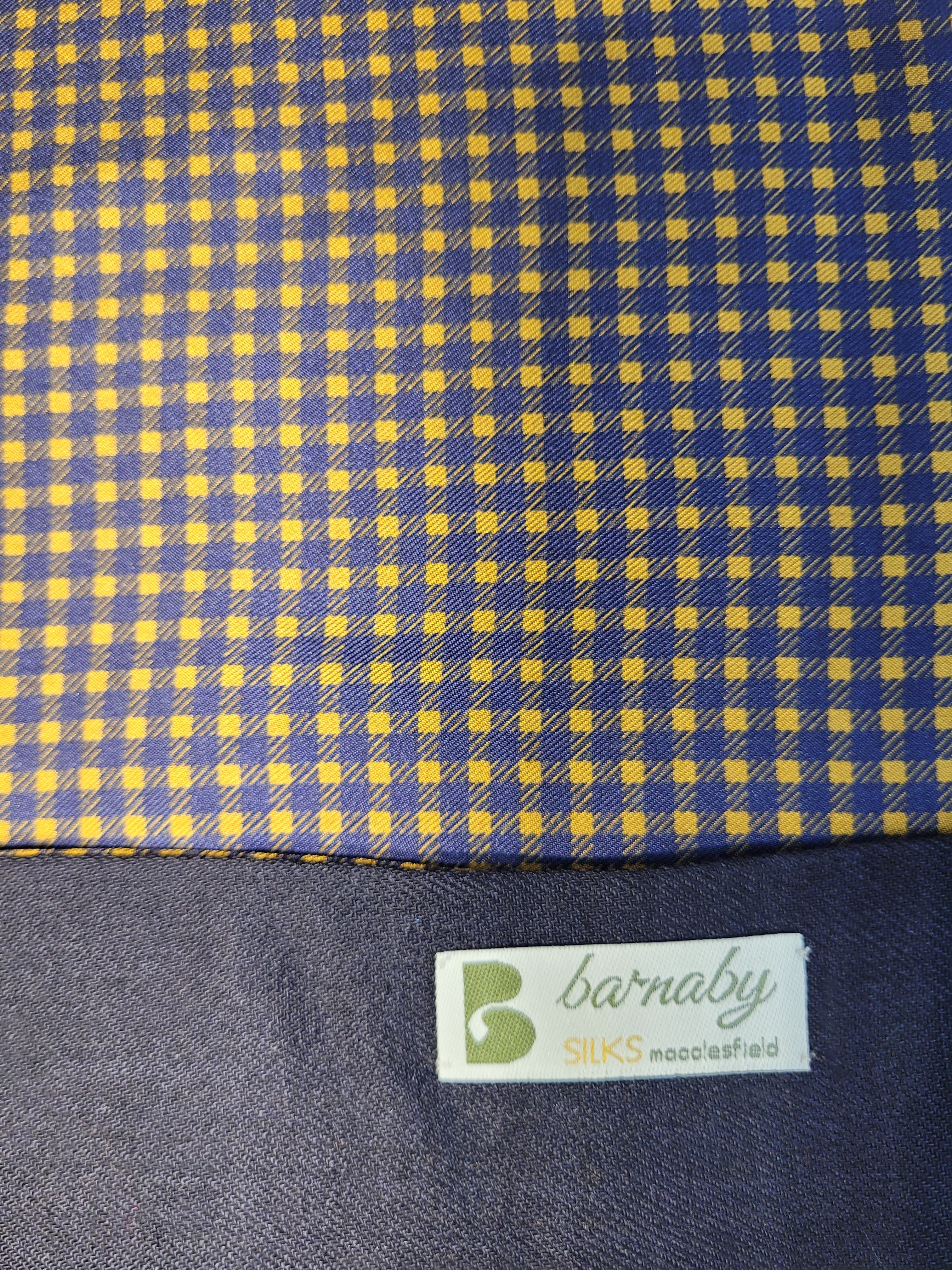Barnaby Silks is the only manufacturer offering a complete UK-based design, print, weave and make up service using 100% pure Macclesfield silk, to deliver a range of scarves, ties, pocket squares and accessories across the globe.  Hand Knotted 100% silk scarf backed with dyed wool cashmere. Dry clean only British...