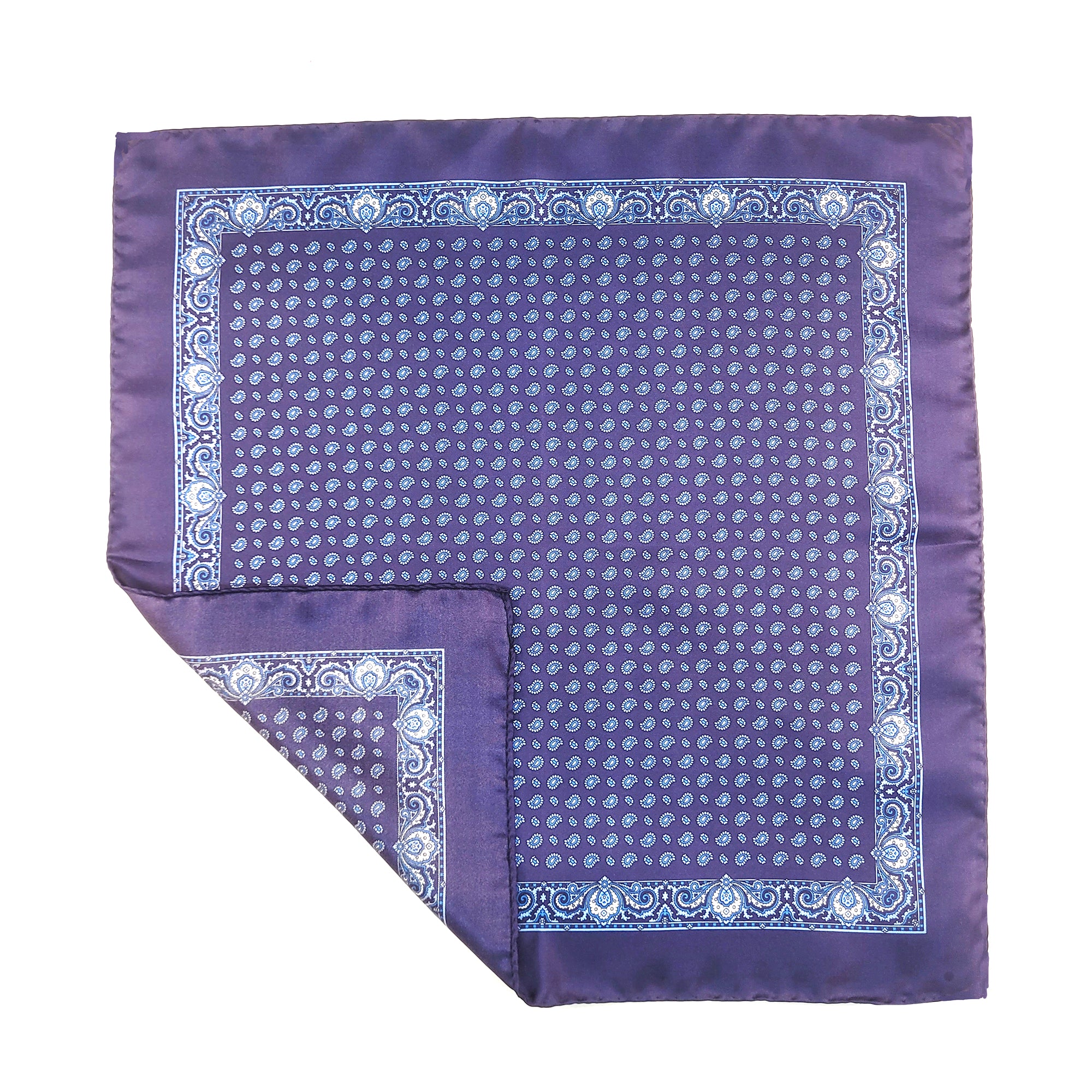 - Tear drop pocket square with a paisley border pocket square.