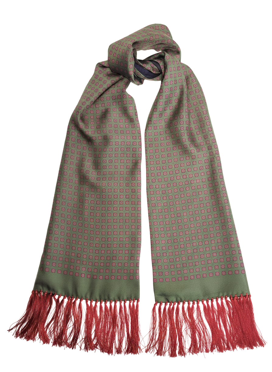 Green and Red Scarf with Hand Knotted Red Tassels